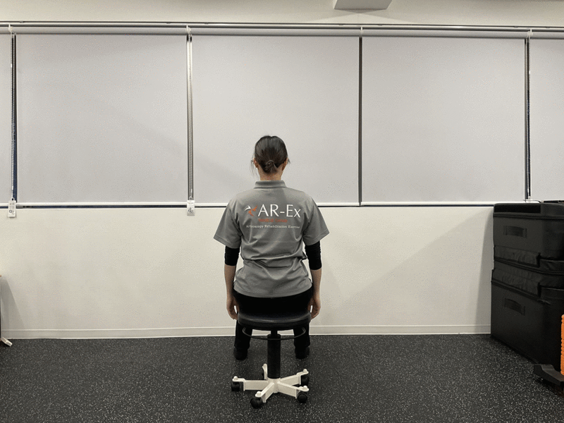 3:上記の姿勢から肩甲骨を寄せ、背部筋を意識しながら両腕をもちあげる