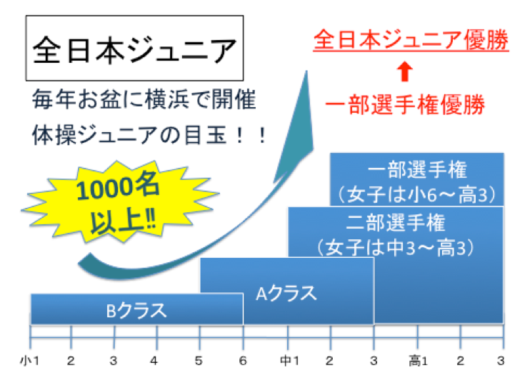 同大会は、1,000名を超える小中高校生の体操競技選手が出場する体操ジュニア日本最大の大会です。オリンピックを戦う現在の日本代表選手も例外なく全日本ジュニアを経験しています。