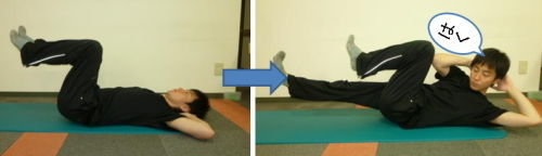 床まで戻したときもお腹から力を抜かないようにして再び身体を起こします