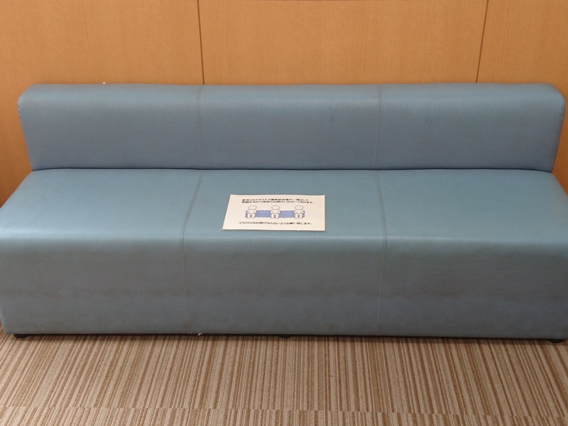 〇待合室、リハビリ待機スペースでは患者様どうしの間隔をあけて座って頂いてます。