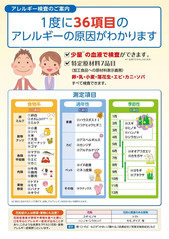 血液検査で一度に36項目のアレルギーを調べることができる検査を行っております。(MAST36)