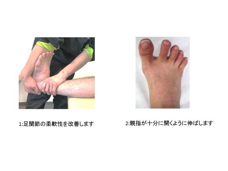 変形した母趾が元の場所に戻るのか、足関節の可動域を確認します。
