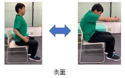 ・胸を張るときは肩甲骨を背骨に近づけるように意識します。