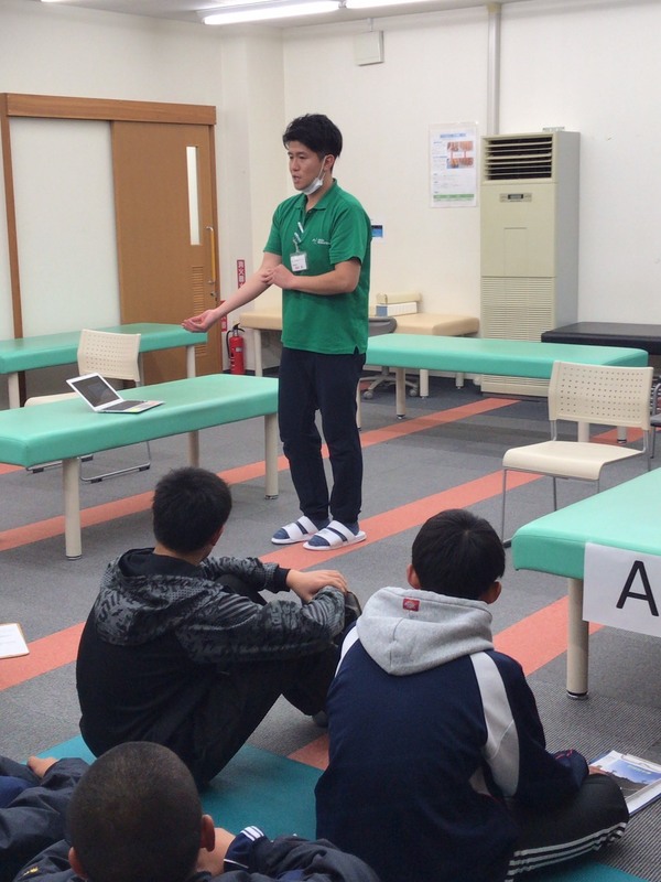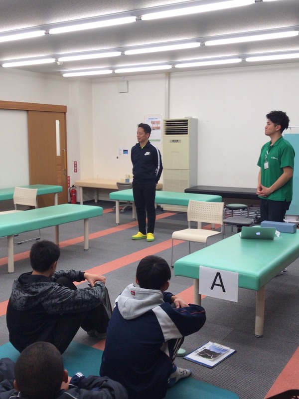 検診後は結果をもとに選手たちに必要なストレッチの方法を指導しました。